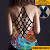 Premium Cross Tank Top: Back lattice is made of triple-layered black stretch fabric and is oversewn (so it cannot be printed)