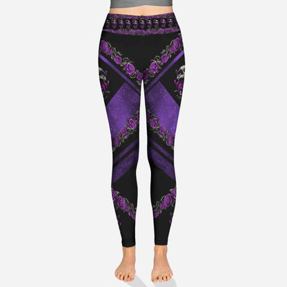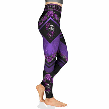 Love Skulls Purple Roses Leggings