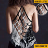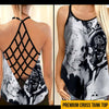 Premium Cross Tank Top: Back lattice is made of triple-layered black stretch fabric and is oversewn (so it cannot be printed)